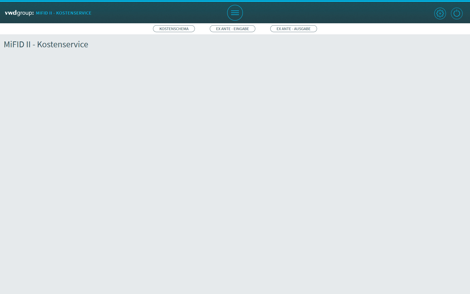 Der Kostenservice wird mit der Einstiegsseite "MiFID II – Kostenservice" geöffnet.