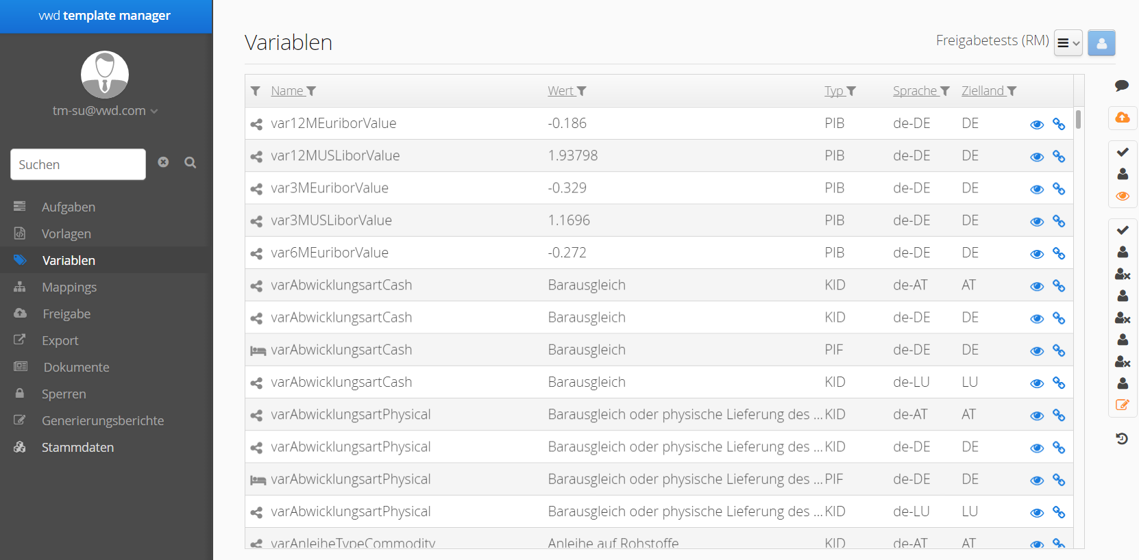 Wenn Sie mit der Bearbeitung der Variablen fertig sind, klicken Sie auf das Icon "Bearbeitung abschließen". Dadurch werden die Variablen zur weiteren Bearbeitung durch andere freigegeben.