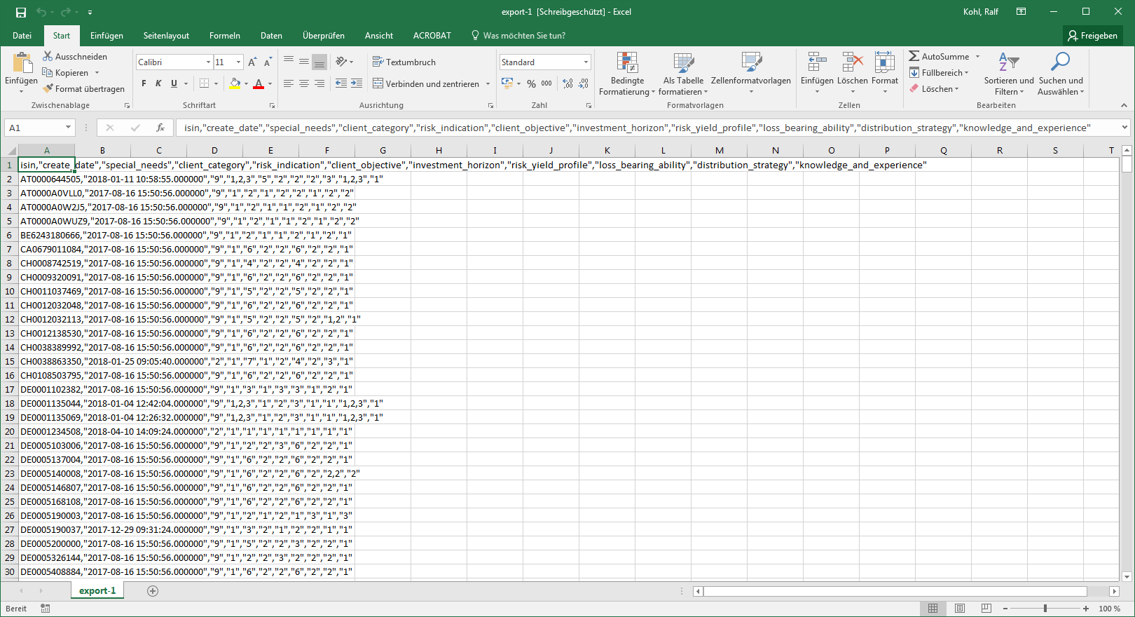Die Datei kann dann z. B. in Microsoft Excel geöffnet und bearbeitet werden.