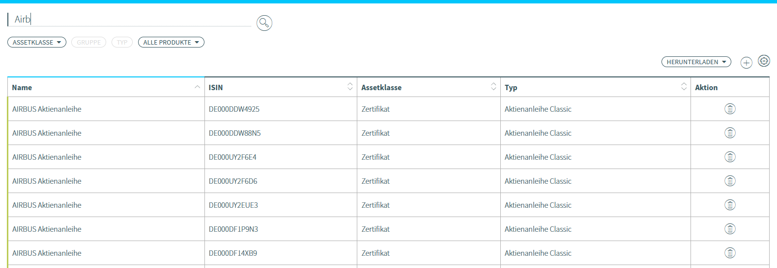 Im Wertpapieruniversum nach Wertpapieren suchen