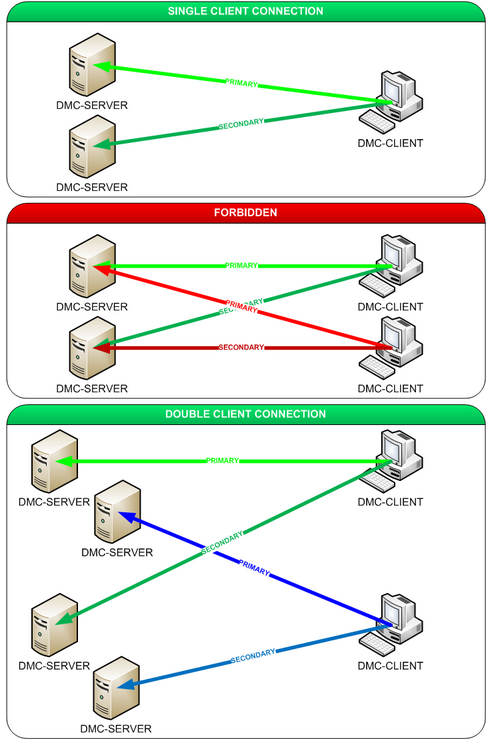 The figure above illustrates the 1:1 client-server connectivity of .