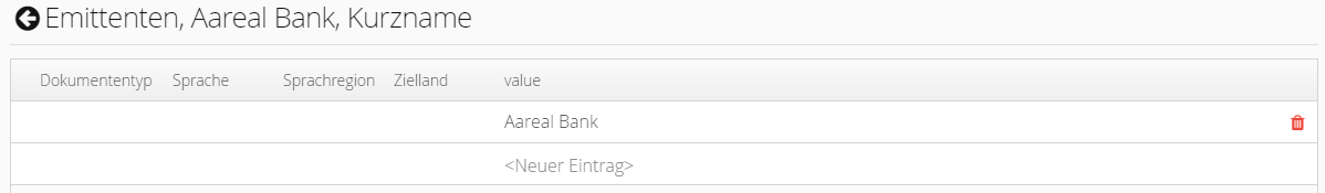 Initial angelegte Werte sind für alle Dokumententypen, Sprachen, Sprachregionen und Zielländer gültig, alle entsprechenden Metadaten-Felder des Wertes sind unbefüllt.
