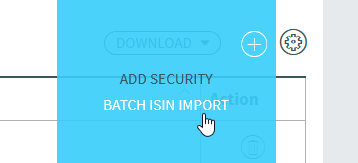 Select the command "Batch ISIN import" command from the menu of the icon.