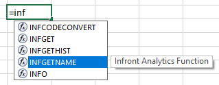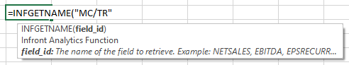There are more than 230 fields available in Infront Excel Add-In. The list of those fields is constantly improving. To find more easily any field you need, you can use the field picker wizard.