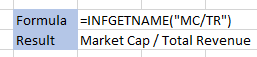 INFGETNAME() function will retrieve only INFGET() fields names. It will not work with some specific RTD() fields.