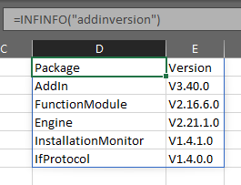 =INFINFO("AddinVersion")